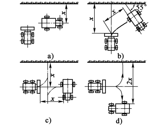 a)“I”形作業(yè)法 b) “V”形作業(yè)法 c) “L”形作業(yè)法 d) “T”形作業(yè)法