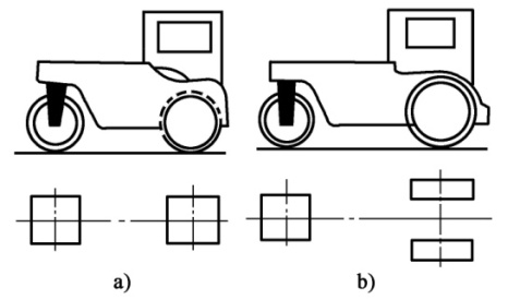 自行式光輪壓路機根據滾輪和輪軸數目主要分為二輪二軸式和三輪二軸式。