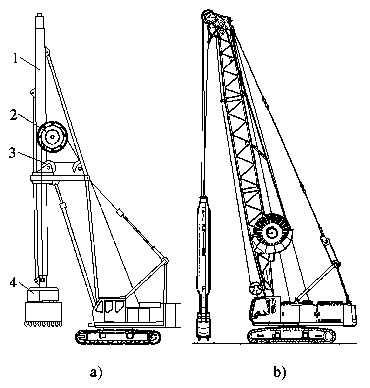 1履帶樁架;2導桿;3液壓軟管卷筒;4抓斗