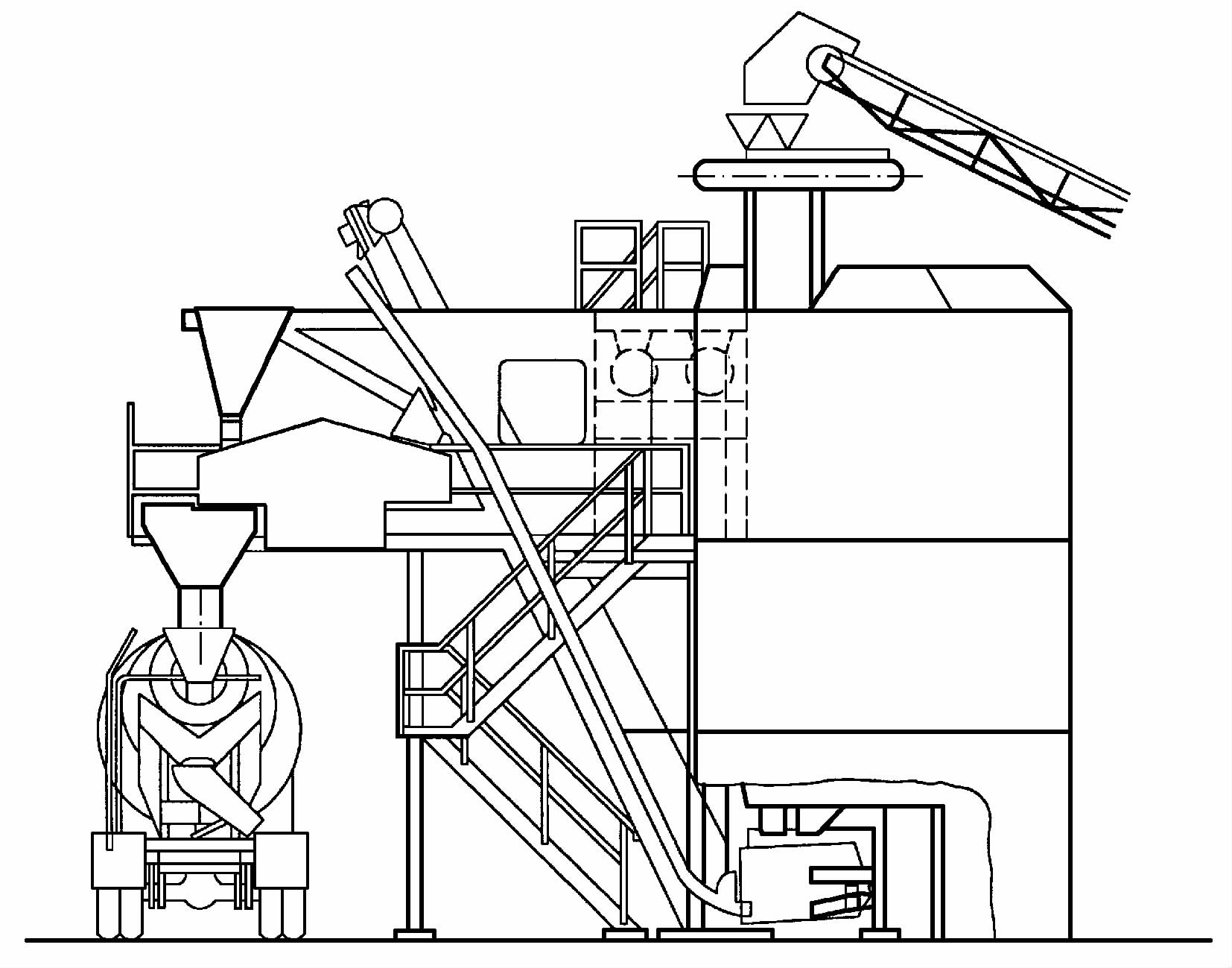 混凝土攪拌樓(站)的供儲系統包括了砂石集料、水泥、粉煤灰、水及添加劑的供給和儲存。供儲系統一般由運輸設備及儲料設備組成。砂石集料的運輸設備有皮帶運輸機、拉鏟、裝載機等;水泥的運輸設備有斗式提升機、螺旋輸送機、風動運輸設備等;而水及添加劑常用泵送。儲料設備是由儲料斗倉、卸料設備和一些其他附屬裝置組成。