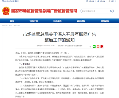 市場監(jiān)管總局關(guān)于深入開展互聯(lián)網(wǎng)廣告整治工作的通知