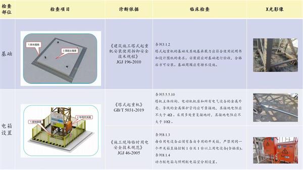 《建筑施工塔式起重機安裝使用拆卸安全技術規程》JGJ 196-2010條例2. 0.14:1、低位塔式起重機的起重臂端部與另一臺塔式起重機的塔身之間的距離不得小于 2m。2、高位塔式起重機的最低位置的部件(或吊鉤升至最高點或平衡重的最低部位)與低位塔式起重機中處于最高位置部件之間的垂直距離不得小于 2m。《塔式起重機安全規程》GB 5144-2006條例10.4:塔機任何部位應與輸電線路保持下表規定的安全距離。《建筑施工塔式起重機安裝使用拆卸安全技術規程》JGJ 196-2010條例3.1.2,塔式起重機的基礎及其地基承載力應符合使用說明書和設計圖紙的要求。安裝前應對基礎進行驗收,合格后方可安裝。基礎周圍應有排水設施。1、《塔式起重機》GB/T 5031-2019條例5.5.5.10,塔機主體結構、電動機機座和所有電氣設備的金屬外殼、導線的金屬保護管均應可靠接地,其接地電阻應不大于 4Ω 。采用多處重復接地時,其接地電阻應不大于 10Ω 。2、《施工現場臨時用電安全技術規范》JGJ 46-2005條例8.1.3,每臺用電設備必須有各自專用的開關箱,嚴禁用同一個開關箱直接控制 1 臺及 1 臺以上用電設備(含插座)。3、《施工現場臨時用電安全技術規范》JGJ 46-2005條例8.1.4,動力配電箱與照明配電箱宜分別設置。